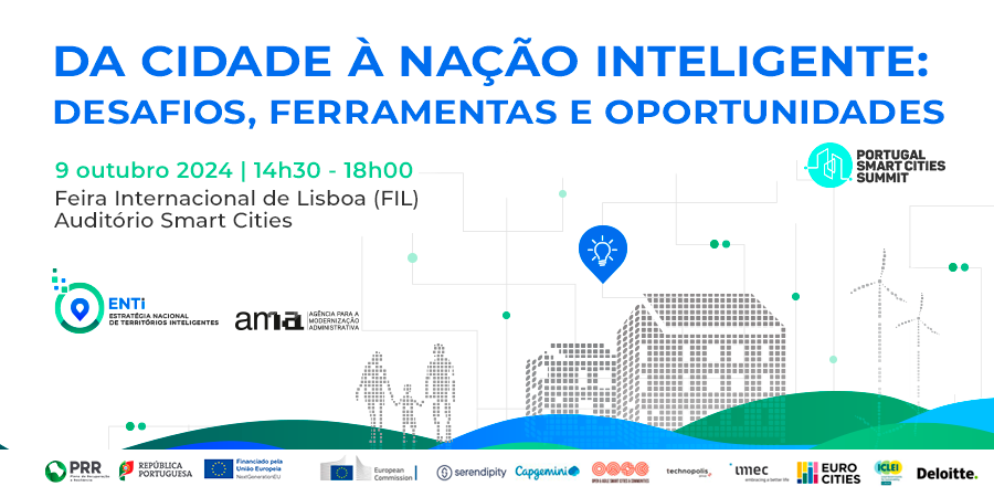 Temos o prazer de convidar a participar no nosso evento híbrido “Da Cidade à Nação Inteligente - Desafios, ferramentas e oportunidades” no dia 9 de outubro de 2024 das 14h30 às 18h00 na Portugal Smart Cities Summit 2024, Feira Internacional de Lisboa (FIL), Auditório Smart Cities.