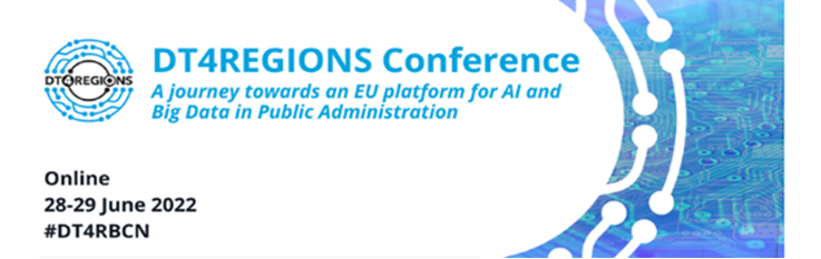 The mid-term event of the DT4REGIONS Project "A Journey towards an EU Platform for AI and Big Data in Public Administration" will take place on 28 and 29 June 2022 in hybrid mode; speakers and partners will be present on-site in Barcelona, whereas registered participants will be able to participate online.