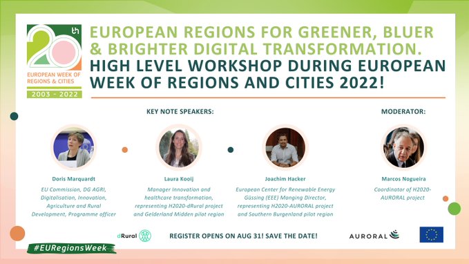 This workshop is a collaboration between AURORAL and dRural. Its aim is to promote the awareness for the general public, not just the relevant stakeholders and authorities, to achieve a better understanding and critical reflection between inhabitants and needs in different rural areas and the common goal they want to achieve through digitalisation.