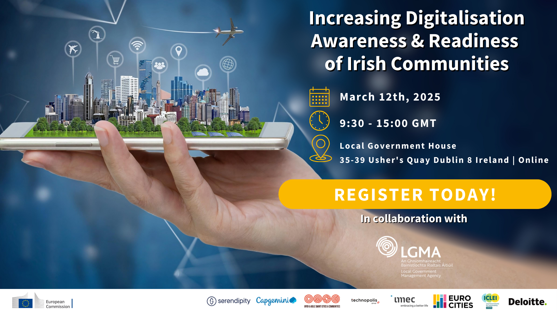 We are pleased to invite you to participate in our hybrid event on the 12th of March 2025 at 9:30 GMT at Local Government House, 35-39 Usher's Quay Dublin 8 Ireland | Online thanks to the support of Local Government Management Agency (LGMA)