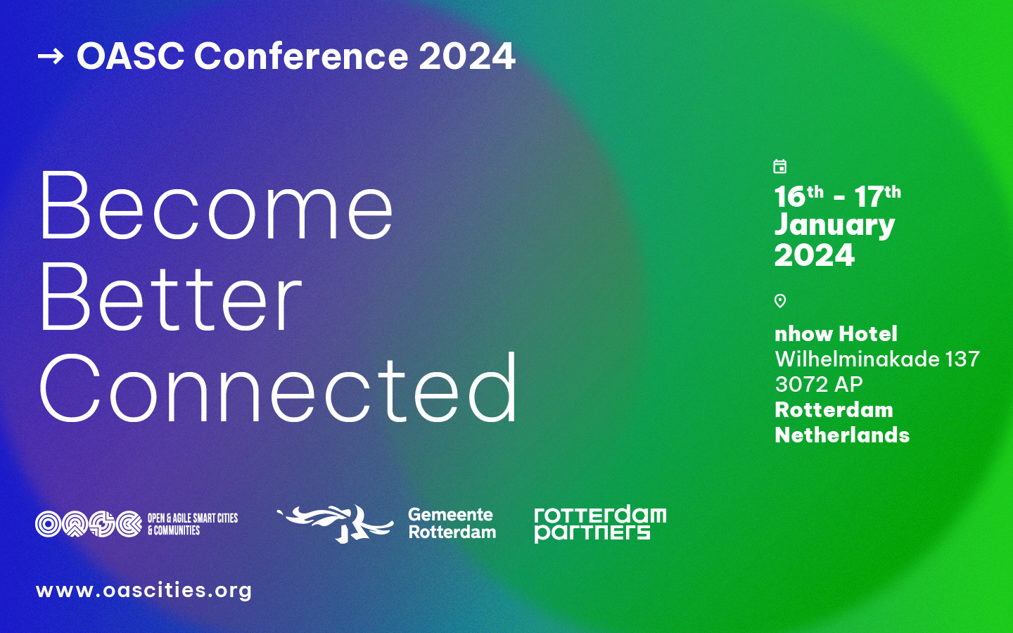 Together with the City of Rotterdam we invite you to the OASC "Become Better Connected" conference of January 2024. This conference will shed new light on the recalibration and strengthening of the OASC-network and will also highlight the interesting developments going on in Rotterdam, the new coordinator of the Council of Cities.