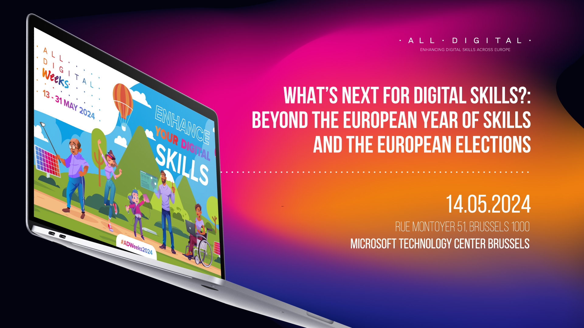 The ALL DIGITAL Weeks 2024 international launch event titled “What’s next for Digital Skills? Beyond the European Year of Skills and the European Elections” is taking place on 14 May (14.30 to 17.30) in Brussels (Rue Montoyer 51).